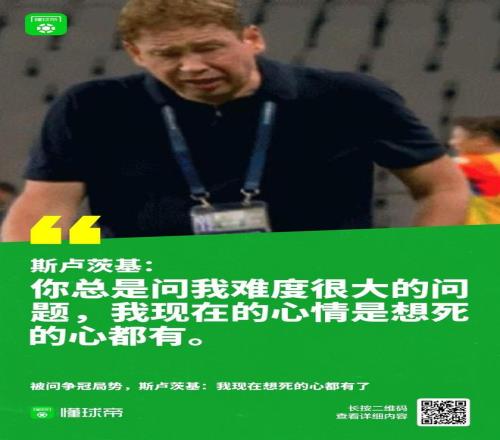 在山东打入第三球后,申花主帅斯卢茨基甚至在场边流下眼泪。赛后发布会上,被记者问及争冠形势时,斯卢茨基崩溃地表示无法回答这个问题,因为自己想死的心都有了。如此直率而感性的言论,在教练界实为罕见。