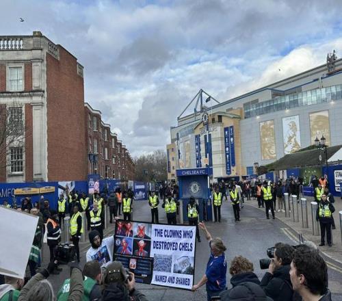 据《伦敦足球》记者Dom Smith现场报道,切尔西球迷对蓝军所有者BlueCo集团的抗议活动正在逐渐升温。现场响起了“罗曼-阿布拉莫维奇”“我们想要我们的切尔西回来”以及“我们不在乎清湖(资本)”的口号。